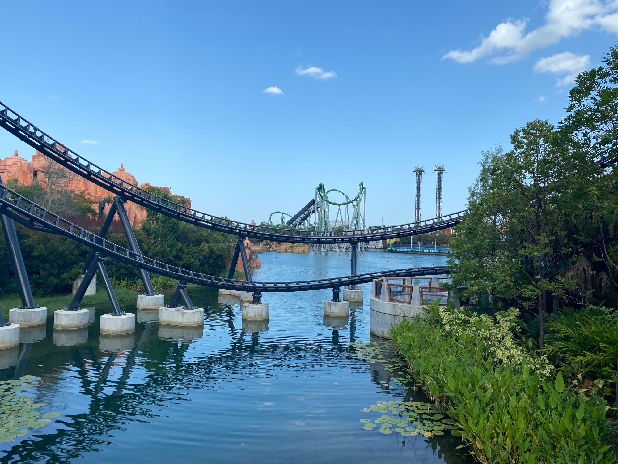 Heute müssen wir erst am Mittag auschecken. Dies geniessen wir und schlafen aus. Wir packen rasch alles zusammen und fahren los. Unterwegs gehen wir Mittagessen, in einem Restaurant dass uns empfohlen wurde. Danach geht es mit dem Auto weiter nach Orlando. Wir kommen bereits relativ früh in Orlando an. die Autofahrt an sich dauerte ca. 2 Stunden. Da wir sowieso noch nicht einchecken können, gehen wir in einem riesigen Einkaufszentrum shoppen. So lässt sich die Zeit bis zum Check-in auch totschlagen. Am nächsten Morgen informieren wir uns über die verschiedenen Aktivitäten, die Orlando zu bieten hat. Wir entscheiden und schlussendlich, nach dem Tipp der Promoterin im Hotel, einen 2-Tagespass für das Universal Studio in Orlando zu kaufen. Dieser Park ist riesig, wahrscheinlich werden die zwei Tage niemals ausreichen. Die Fahrt vom Hotel aus dauert nur ca. 15 Minuten. Nach unserer Ankunft gehen wir erstmals etwas essen. Restaurants und Essenstände hat es mehr als genug. Wir sind allerdings etwas enttäuscht. Alleine die Tickets für den 2-Tagespass haben uns fast CHF 300 pro Person gekostet, dazu kommt dann noch die Gebühr für das Parkieren (fast CHF 30 pro Tag) und das Essen und die Getränke im Park sind meiner Meinung nach sehr überteuert. Zudem macht es einem mit über 35 Grad hier auch nicht Spass in der Sonne zu stehen. Unsere Stimmung leidet leider etwas darunter. Wie spazieren etwas herum und schauen uns die Bahnen an. Bei den coolsten Bahnen muss man leider immer über eine Stunde anstehen. Wir schaffen es auf die einte Harry Potter Bahn zu gehen. Danach verleidet es uns beiden und wir entscheiden uns ins Hotel zu gehen. Morgen ist auch noch ein Tag. Am nächsten Morgen entscheiden wir uns in den Wasserpark Volcano Bay zu gehen. Der Eintritt ist bei unserem 2-Tagespass dabei. Der Park hat ein paar coole Bahnen, leider muss man auch hier überall eine Ewigkeit anstehen, bzw. warten. Hier bekommt man nämlich beim Eintritt ein Armband. Wenn man auf eine Bahn gehen möchte hält man das Band an einen Leser, danach zeigt es einem auf dem Band an wie lange die Wartezeit ist. Sobald die Zeit um ist kann man dann für die Bahn anstehen. Leider kann man sich nur für eine Bahn aufs Mal anmelden. Bei vielen Bahnen besteht eine Wartezeit von über zwei Stunden. Ich möchte gar nicht wissen wie es hier in der Hochsaison aussieht. Leider ist auch hier alles überteuert. Um ca. 16:00 Uhr entscheiden wir uns zurück zum Hotel zu fahren. Wir sind beide enttäuscht und der Meinung, wir hätten das Geld besser investieren können. Abends gehen wir in der Nähe unseres Hotels in einem italienischen Restaurant Nachtessen. Da wir am nächsten Morgen früh aufstehen müssen, gehen wir heute nicht allzu spät ins Bett.