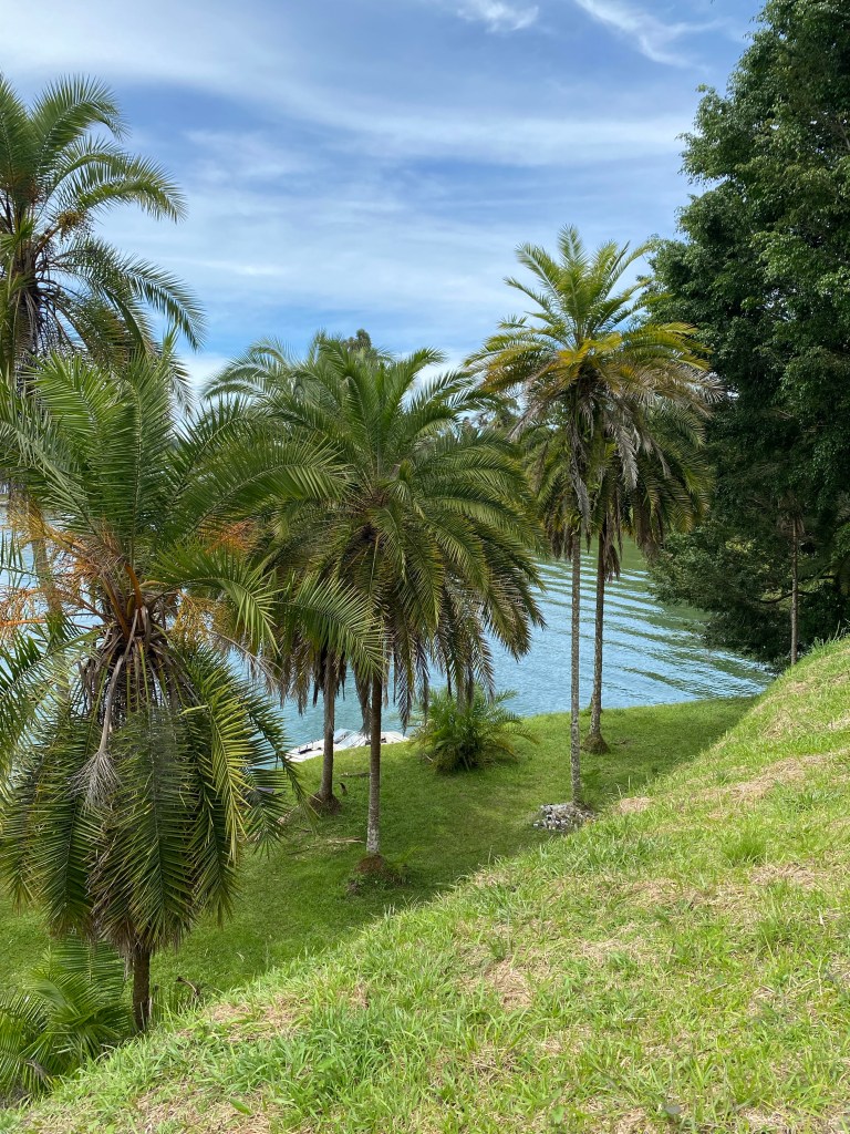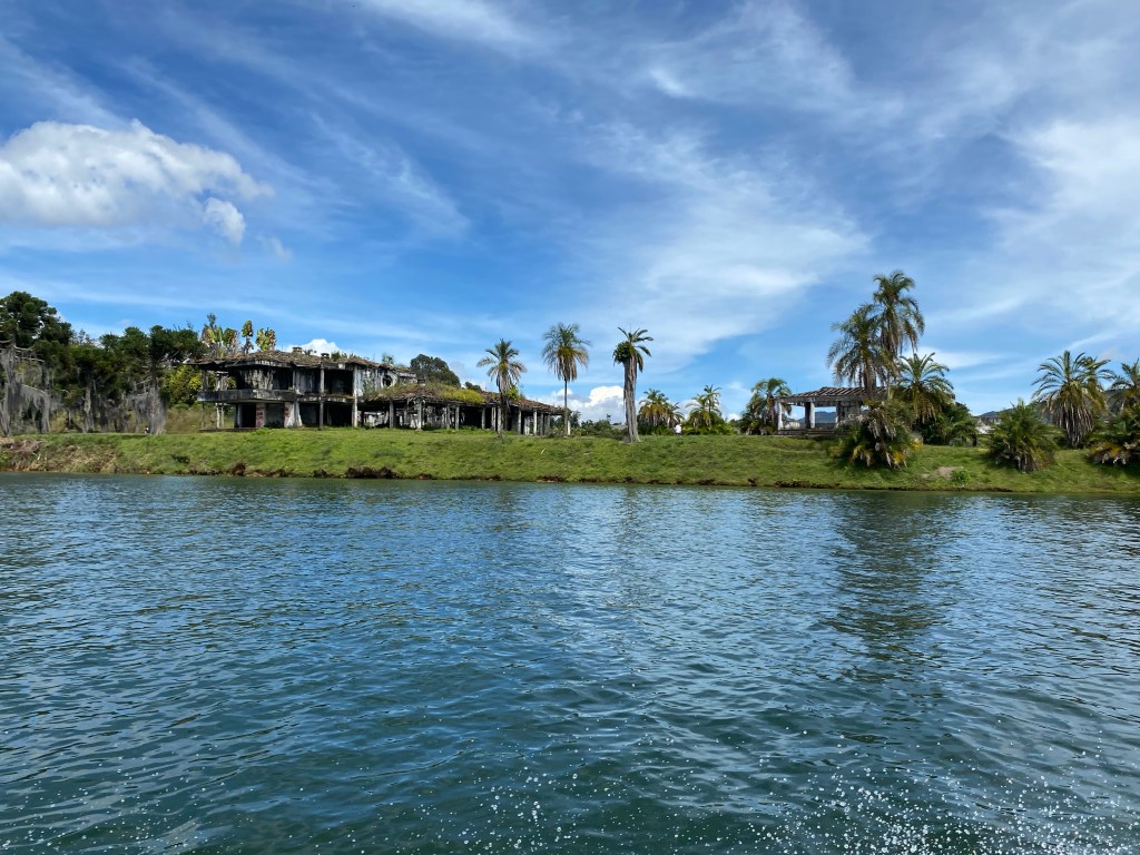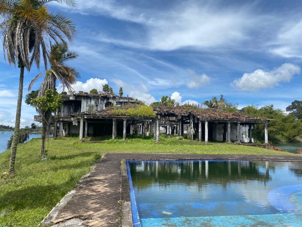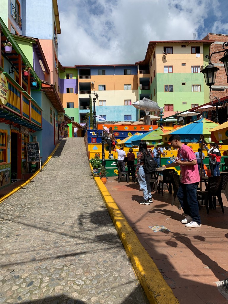 Heute checken wir aus dem Hostel aus und warten auf unser Uber, welches uns zum Busbahnhof in Medellín bringt. Beim Busbahnhof kaufen wir uns zwei Tickets nach Guatapé und steigen in den Bus ein. Die Fahrt dauert ca. zwei Stunden und ist sehr unterhaltsam. Es steigen nämlich immer wieder Musiker ein welche im Bus Vorsingen. Klar sind Tips am Ende der Vorführung erwünscht, aber die Busfahrt ist so ein richtiges Erlebnis. Auch extrem wie günstig ein Ticket für den Bus hier ist. Für die etwa zweistündige Fahrt bezahlen wir pro Person knapp CHF 3. Nach unserer Ankunft in Guatapé gehen wir direkt zum Hostel. Leider bin ich noch nicht ganz fit und die Fahrt hat mich etwas geschafft. Wir verbringen die restliche Zeit des Tages im Hostel. Am nächsten Morgen entscheiden wir uns eine Bootstour zu machen. In der Nacht hat es stark gestürmt. Auch während der Bootstour ist das Wetter nicht ideal. Die Bootstour machen wir mit einem Paar aus England und dem Guide/Kapitän. Wir haben das Glück, dass sich die Wolken etwas verziehen und ein paar Sonnenstrahlen durchdringen. Die Geschichte vom See ist ziemlich spannend. Er entstand nämlich erst in den 70er Jahren. Er hatte den Zweck als Stausee Strom zu produzieren, unter anderem für Medellín. Heute dient er mehr als Touristenattraktion. Die Einwohner mussten dazumals ihre Häuser verlassen und an höher gelegene Orte ziehen. Heute sieht man noch ein grosses Kreuz aus dem See ragen. Das Kreuz wurde oberhalb der früheren Kirche errichtet. Während der Bootstour sehen wir uns ebenfalls ein ehemaliges Anwesen von Pablo Escobar an. Leider ist die Hauptbaute durch eine Bombe im Jahr 1991 stark demoliert worden. Die Besichtigung der verschiedenen Gebäude hier ist aber trotzdem sehr spannend. Die Anlage wurde nach der Tochter vom Pablo Escobar „La Manuela“ benannt. Nach der Bootstour spazieren wir noch etwas in Guatapé herum und erkunden das Dorf. Am Abend essen wir nochmals im Thai-Restaurant in unserem Hostel zu Abend. Am nächsten Morgen checken wir aus und deponieren unsere Rucksäcke im Hostel. Guatapé ist unter anderem für den riesigen Felsen „el Peñon“ bekannt. Der Felsen aus Granit ist ca. 220 Meter hoch, soll aber unter der Erde noch tiefer sein. Im Dorf gibt es viele verschiedenen Geschichten zum Felsen, wie dass er von Aliens sei oder dass er magische Kräfte haben soll. Wer weiss… 😊 Da es mir heute etwas besser geht entscheiden wir uns, auf den Peñol zu steigen. Die Treppe, um auf den Peñol zu steigen, hat ja nur ca. 700 Tritte und ist ja nur auf etwas über 2000 Meter. Ein Kinderspiel also.. Nein im Ernst, der Aufstieg ist nicht so schlimm wie gedacht, nur die schmalen Tritte machen mir zum Teil zu schaffen. Für die Aussicht auf die wunderschöne Seenlandschaft hat es sich aber mehr als gelohnt. Nach dem Abstieg gehen wir zum Hostel und holen unser Gepäck ab. Danach fahren wir mit dem Bus zurück nach Medellín und beziehen unser Zimmer im nächsten Hostel. Das Hostel hat eine gute Lage, es hat viele coole Restaurants und Bars in der Nähe.