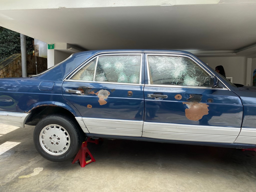 Heute Morgen gehen wir zuerst grosszügig frühstücken. Danach entscheiden wir uns spontan ins Pablo Escobar Museum zu fahren. Dort werden uns zwei Optionen vorgeschlagen. Die eine Option ist eine Führung nur im Museum während die andere Option noch weitere wichtige Orte ausserhalb des Museums beinhaltet. Wir entscheiden uns für die zweite Option, da wir an diesem Tag sowieso keine Pläne haben. Das Museum selbst ist eines der ehemaligen Anwesen Escobars. Als Erstes wird uns der Bunker des Anwesens gezeigt. Pablo Escobar hatte in seinen Anwesen jeweils Bunker als Versteck für sein Geld. All seine Bunker sind gut versteckt (hinter Bücherregalen, Bildern etc.) und bombensicher erbaut. Vom Bunker aus führen oft unterirrdische Fluchtwege (Kanäle) in andere naheliegende Liegenschaften Escobars. Im Aussenbereich stehen diverse Fahrzeuge (Helikopter, Flugzeug, bombensichere Autos, Jet Ski) welche er benutzt hat. Nachdem der Rundgang im Museum sein Ende findet, geht es mit einem kleinen Bus weiter auf den zweiten Teil der Führung. Nun besuchen wir den Memorial Park, welcher auf einem ehemaligen Grundstück von Pablo Escobar errichtet wurde. Er erinnert an die zahlreichen tragischen Ereignisse, welche über Jahrzehnte in Kolumbien stattgefunden haben und gedenkt den unzähligen Opfern. Danach fahren wir zum Friedhof, wo Pablo Escobar und seine engsten Angehörigen begraben sind. Zuletzt wird uns vor seinem Grab erklärt, dass Pablo Escobar nicht wie bisher angenommen von einem Polizisten erschossen wurde, sondern gemäss neusten Erkenntnissen Suizid begangen hat, bevor ihn die Polizei fassen konnte. Er wollte somit seine Auslieferung in die USA verhindern. Uns wird klar gemacht, wieviel von der Geschichte Pablo Escobars noch ungeklärt ist und nur auf Annahmen beruht. Nach der Führung spazieren wir noch etwas durch die Medellín und gehen am späteren Nachmittag zurück zum Hostel. Am nächsten Tag nehmen wir kurz nach Mittag ein Taxi an den Flughafen. Der Flug nach Santa Marta dauert knapp eine Stunde. Das Klima hier an der Karibikküste Kolumbiens ist viel wärmer als in Medellín. In Santa Marta übernachten wir nur eine Nacht. Dort erfahren wir von einem Bekannten, welchen wir in Medellín kennengelernt haben und zufälligerweise auch nach Santa Marta gereist ist, dass er letzte Nacht von einem mit Messer bewaffneten Mann überfallen wurde. Ihm selbst ist dabei zum Glück nichts passiert, allerdings wurden sein Handy und sein Portmonnaie gestohlen. Er sagt allerdings selbst, dass er zu wenig aufgepasst hat. Nachts hier alleine durch dunkle Gassen zu laufen, wird einem strikt abgeraten. Zum Glück ist uns bis jetzt noch nichts in der Art passiert. Am nächsten Morgen fahren wir mit einem lokalen Bus etwa zwei Stunden nach Guachaca. Von der Hauptstrasse aus nehmen wir das Mototaxi zum Costeño Beach Hostel. Das Hostel ist sehr schön und wird von einer prächtigen Naturkulisse umschlossen. Es kommt einem so vor, als sei man mitten im Dschungel. Wir schlafen in einem Bungalow. Das WC und die Dusche sind draussen unter freiem Himmel. Mal etwas anderes als bisher. Wir sind allerdings beide froh um die Mückennetze, welche wir mitgenommen haben. Da das Meer hier mehr zum Surfen als zum Schwimmen geeignet ist, verbringen wir die nächsten beiden Tage vermehrt am Pool, spielen Ping-Pong und lassen uns kulinarisch Verwöhnen.