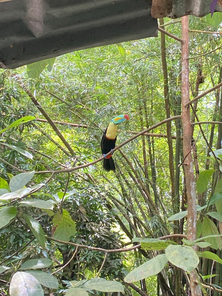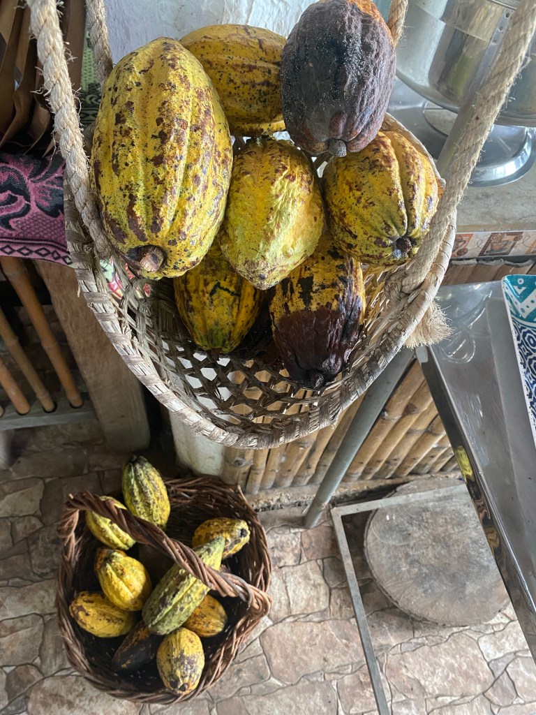 Heute machen wir einen Ausflug nach Minca. Minca ist ein kleines Dorf, etwa 45 Minuten von Santa Marta entfernt und liegt in der Sierra Nevada de Santa Marta. Die Sierra Nevada ist eine Bergkette in Kolumbien. Die beiden höchsten Gipfel (Pico Cristóbal Colón und Pico Simón Bolívar) sind fast 6000 Meter hoch. Minca selbst liegt auf etwa 650 Metern Höhe. Bekannt ist Minca für die vielen Kaffeeplantagen und die Wasserfälle. Wir stehen frühzeitig auf und frühstücken im Hostel. Danach werden wir von einem Fahrer abgeholt und fahren nach Minca. Wir haben zwar fast eine Stunde Verspätung, aber wir sehen dies langsam locker. In Minca selbst warten noch mehr Personen auf die Führung. Nachdem uns der heutige Ablauf erklärt wird und wir mehrmals darauf hingewiesen wurden, aus Sicherheitsgründen keine Pflanzen oder Tiere zur berühren oder zu essen (kam anscheinend bereits vor), startet unsere Führung. Wir laufen ziemlich gemütlich los. Die Pflanzenvielfalt hier ist unglaublich. Auffallend finde ich, dass es hier so viel Bambus hat. Ich wusste eigentlich gar nicht, dass er hier heimisch ist. Der Weg ist teilweise etwas rutschig und matschig. Nach etwa 20 Minuten stehen wir vor einem schmalen Fluss. Unser Guide meint wir sollen die Schuhe ausziehen und den Fluss überqueren. Janosch ist so lieb und trägt mich Huckepack über den Fluss. Danach laufen wir weiter durch den Dschungel und gelangen zum ersten Punkt, der Kaffeeplantage. Diese Plantage ist sehr klein und wird von drei Brüdern betrieben. In Kolumbien wird ausschliesslich Arabica-Kaffe angebaut. Unser Guide erklärt uns den genauen Ablauf der Kaffee-Herstellung. Er zeigt uns einen Kaffeebaum, an welchem momentan noch unreife, grüne Kaffeebohnen sind und erklärt uns den Ernte-Prozess und die Fermentierung. Danach zeigt er uns rohe Kaffeebohnen (geschälte weisse Bohnen) und zum Schluss die gerösteten Kaffeebohnen. Die Kaffeebohnen werden normalerweise nicht hier geröstet, sondern vorher verpackt und exportiert und erst im Empfängerland geröstet. Nach der Führung dürfen wir alle vom Kaffee probieren. Er ist sehr lecker. Auf dem Anwesen entdecken wir einen wunderschönen Tukan und zwei Papageie. Danach geht es nochmals durch einen Fluss und danach weiter zu einem Wasserfall. Dort verweilen wir eine halbe Stunde und haben die Möglichkeit zu Baden. Der nächste Punkt auf dem Programm ist das Mittagessen. Hochmotiviert laufen wir weiter und kommen nach einer knappen Stunde an. Wir sind hier etwas ausserhalb von Minca in einem Bambus-Haus mit einer herrlichen Aussicht über den Dschungel bis nach Santa Marta. Das Mittagessen ist sehr lecker. Nach dem Essen erfahren wir noch etwas mehr zum Guadua-Bambus. Aus diesem Bambus wurde nämlich auch dieses Haus hier gebaut. Weltweit gibt es weit über 100 Bambusarten. Als stärkster Bambus gilt der Guadua Bambus. Er soll mehr Tragkraft als Stahl haben. Anschliessend werden wir über gefährliche Tiere in Kolumbien aufgeklärt. Die beiden „Vorträge“ waren beide sehr interessant. Nun kommen wir zum nächsten und auch letzten Punkt. Wir lernen die Geschichte von Kakao in Kolumbien kennen. Wir erfahren ebenfalls wie Kakao verarbeitet wird. Danach wird vor uns eine frische Kakao-Frucht aufgeschnitten. Wir dürfen dann das weisse Fruchtfleisch probieren, was sehr süss schmeckt. Danach wird uns mit bereits getrockneten und gerösteten Kakaobohnen demonstriert, wie Kakaopulver gemahlen wird. Das Kakaopulver dürfen wir ebenfalls probieren. Es schmeckt noch nicht wirklich nach der uns bekannten Schokolade und ist sehr bitter. Wir erhalten alle die Möglichkeit, das Kakaopulver zusammen mit Zucker und weiteren Zutaten zu probieren. Es wird von Hand zu einer kleinen Kugel geknetet und schmeckt schon viel mehr nach Schokolade. Zuletzt werden wir aufgeklärt, dass Kakao viele positive Eigenschaften hat. Leider sind im industriell verarbeitetem Kakao nicht mehr viele gesunde Inhaltsstoffe vorhanden (was mich aber nicht von Schokolade fernhalten wird). Insgesamt fand ich den heutigen Ausflug sehr toll. Wir werden von unserem Fahrer wieder zurück zum Hostel gefahren und gehen auf der Dachterrasse des Hostels etwas trinken. Am nächsten Morgen frühstücken wir nochmals im Hostel und checken aus. Danach spielen Janosch und ich ein paar Runden Ping Pong bis wir mit einem Taxi zum Busterminal in Santa Marta fahren. Nach einer knappen Stunde Verspätung fährt unser Bus nach Cartagena endlich los. Die Busfahrt selbst geht, samt zwei kurzen Stopps, etwa fünf Stunden. Gegen 18:00 Uhr kommen wie am Busterminal in Cartagena an. Das Terminal befindet sich etwas ausserhalb der Stadt. Mit etwas Glück schaffen wir es ein Taxi zu bekommen und fahren zu unserem Hostel. Bis wir angekommen sind und ins Hostel eingecheckt haben, ist es schon nach 20:00 Uhr. Wie haben beide Hunger und sind etwas geschaffen von der langen Busfahrt. Nachdem wir in einem Restaurant in der Nähe des Hostels gegessen haben, gehen wir schlafen.