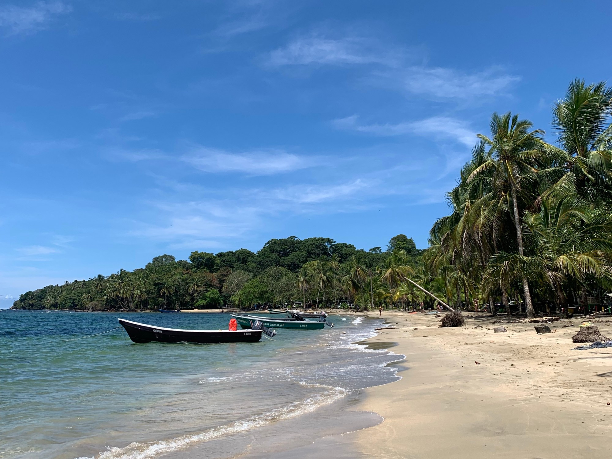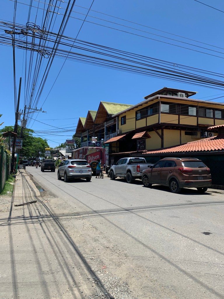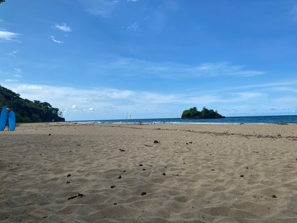 Heute morgen fahren wir früh mit einem Uber los zum Flughafen. Es hat sehr viel Verkehr und der Tunnel in Richtung Flughafen ist gesperrt. Falls wir den Umweg um den Tunnel fahren müssen, hätten wir eventuell unseren Flug verpasst. Wie durch ein Wunder räumt ein Polizist gleich vor uns die Absperrung zur Seite. Sogar unser Uberfahrer jubelt mit uns. Wir sind das zweite Auto, dass wieder durch den Tunnel fahren kann. Wir waren genau zur richtigen Zeit an der richtigen Stelle. Der Flug und die Einreise in Costa Rica verlaufen problemlos. Nachdem wir unser Gepäck wieder haben, fahren wir mit einem Shuttle zur Autovermietung. Dort holen wir unser Mietauto ab, welches wir die nächsten drei Wochen haben werden. Danach fahren wir zu unserem Hostel hier in San José. Am nächsten Morgen fahren wir los und machen einen Stopp in einem Supermarkt. Dort kaufen wir uns Essen und Trinken für unterwegs. Danach fahren wir weiter in Richtung Puerto Viejo de Talamanca. Ausserhalb von San José erwartet uns ein riesiger Dschungel. Bäume so weit man sieht. Nach knapp einer Stunde sind wir in Guápiles. Guápiles liegt in der Mitte zwischen San José und der Karibikküste in Costa Rica. Dort überraschen wir meine beste Freundin Sarah und ihren Freund Juli. Sie arbeiten hier die nächste Woche als Volunteer. Ich freue mich unglaublich sie zu sehen. Dort angekommen, sehen wir unser erstes Faultier sogar zusammen. Nach etwa einer Stunde fahren wir aber weiter, damit wir nicht allzu spät in Puerto Viejo de Talamanca ankommen. Die Fahrt dorthin dauert nun noch etwas über drei Stunden. Nach unserer Ankunft im Hostel, ruhen wir uns erstmal etwas aus. Am Abend kochen wir uns Pasta und gehen früh ins Bett. Am nächsten Morgen laufen wir etwas durchs Dorf und essen dort Frühstück. Am Strand entlang hat es viele kleine Läden. Puerto Viejo de Talamanca ist geprägt von der Reggae-Kultur, da früher viele Jamaikaner hierher ausgewandert sind. Nach dem Essen fahren wir an den etwa 20 Minuten entfernten „Playa Manzanillo“. Der Strand ist traumhaft schön und hat überraschend wenig Leute. Die Palmen reichen teilweise bis ins Wasser. Das Wasser ist klar und weiter aussen hat es ein Riff. Leider haben wir keine Taucherbrillen dabei. Ein paar Stunden später fahren wir an den „Playa Cocles“, welche etwas belebter ist. Als es am späteren Nachmittag anfängt zu regnen, fahren wir zurück zum Hostel. Ein perfekter Strandtag.