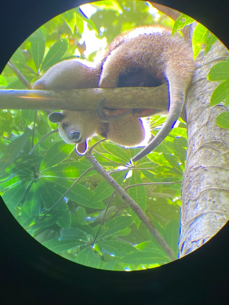 Heute Morgen packen wir zuerst unsere Rucksäcke und checken danach aus. Dann gehen wir gemütlich frühstücken und kurz nach 10:00 Uhr fahren wir mit dem Boot zurück nach La Pavona. Dort steigen wir in unser Auto und fahren los in Richtung La Fortuna. Die Fahrt dauert etwa 3.5 Stunden und ist ziemlich unspektakulär. Unterwegs schüttet es einige Male wie aus Eimern. Wir kommen aber heil in unserem Hostel in La Fortuna an. Am Abend gehen wir in einer lokalen Marisqueria Abendessen. Am nächsten Morgen werden wir um 8:00 Uhr für unsere heutige Tour abgeholt. Zuerst fahren wir zum bekannten Wasserfall, welcher gleich wie die Ortschaft heisst. Dort ziehen wir uns rasch unsere Badesachen an und steigen dann die knapp 500 Stufen hinunter zum Wasserfall. Das Wasser des „La Fortuna Waterfall“ stürzt knapp 70 Meter hinunter in ein Becken und fliesst dann von hier weiter. Wir werden auf die Kraft des Wassers hingewiesen, da einige Personen sich hier beim Baden bereits verletzt haben. Etwas weiter unten am Fluss hat es ein ruhiges, türkisfarbenes Wasserbecken mit silbernen Fischen, welches für mich etwas einladender zum Baden aussieht. Als ich dann etwa hüfthoch im Wasser stehe, entscheide ich wieder aus dem Wasser zu gehen. Es ist bitterkalt. Kurze Zeit später entscheiden wir uns die Stufen wieder hinaufzugehen. Oben angekommen, gehen wir uns kurz duschen und umziehen. Als wir gerade zum Bus zurück laufen möchten, entdeckt unser Guide einen Tukan in den Bäumen. Es gibt 6 verschiedene Arten des Tukans, einen solchen haben wir bis jetzt noch nie gesehen. Danach fahren wir weiter in Richtung Vulkan Arenal. Der Vulkan ist aktiv, weshalb das Besteigen verboten ist. Seit der letzten Eruption 2010 fliesst jedoch kein Lava mehr. Ab und zu tritt noch Rauch aus dem Krater. Als unser Fahrer uns am Fuss des Vulkans absetzt, machen wir uns an die zweistündige Wanderung. Nach etwa 10 Minuten entdecken wir einen Tamandua (kleiner Ameisenbär) auf dem Baum. Ein Glück wie es scheint, unser Guide ist begeistert. Anscheinend sieht man die nur selten. Dank dem Fernrohr, welches unser Guide dabei hat, können wir den Tamandua genauer betrachten und ein paar gute Fotos schiessen. Danach laufen wir weiter den Vulkan hinauf. Aufgrund der Feuchtigkeit, ist die Wanderung ziemlich schweisstreibend. Beim Laufen lernen wir unsere Gruppe noch etwas besser kennen. Oben angekommen haben wir eine schöne Sicht auf den Vulkan Arenal sowie auf den See Arenal (Stausee). Wir stehen inmitten von Lavagesteinen. Am Vulkan erkennt man, wo vor ein paar Jahren die Lava herunterfloss. Nach einer zehnminütigen Pause machen wir uns auf den Rückweg. Unten angekommen, halten wir bei einem kleinen See an. Nebenan hat es ein paar Tische, wo wir nun zusammen Mittagessen. Nach dem Essen schenkt uns unser Guide ein Gläschen „Guaro“ ein. Dies ist ein etwa sechzigprozentiger Zuckerrohrschnaps, welcher in Costa Rica als Nationalgetränk gilt. Umgangsprachlich wird es „Aguardiente“ genannt. Da dieser Schnaps hausgemacht ist, weiss niemand genau wieviel Alkoholgehalt dieser nun hat. Im Anschluss geht es zum letzten Punkt des heutigen Ausflugs – zu den heissen Quellen. Rund um den Vulkan Arenal findet man dutzende solcher Warmwasserquellen. An einer dieser Quellen haben wir etwa eine Stunde Zeit uns im Wasser etwas zu Entspannen. Danach werden wir zurück zu unserem Hostel gefahren. Am Abend treffen wir uns mit Patrick, Jonas und Antonio, welche wir heute bei der Tour kennengelernt haben. Nach dem Nachtessen gehen wir noch in eine Bar in der Nähe. Da wie morgen ein paar Stunden Autofahrt vor uns haben, verlassen wir die Gruppe später und gehen ins Bett.