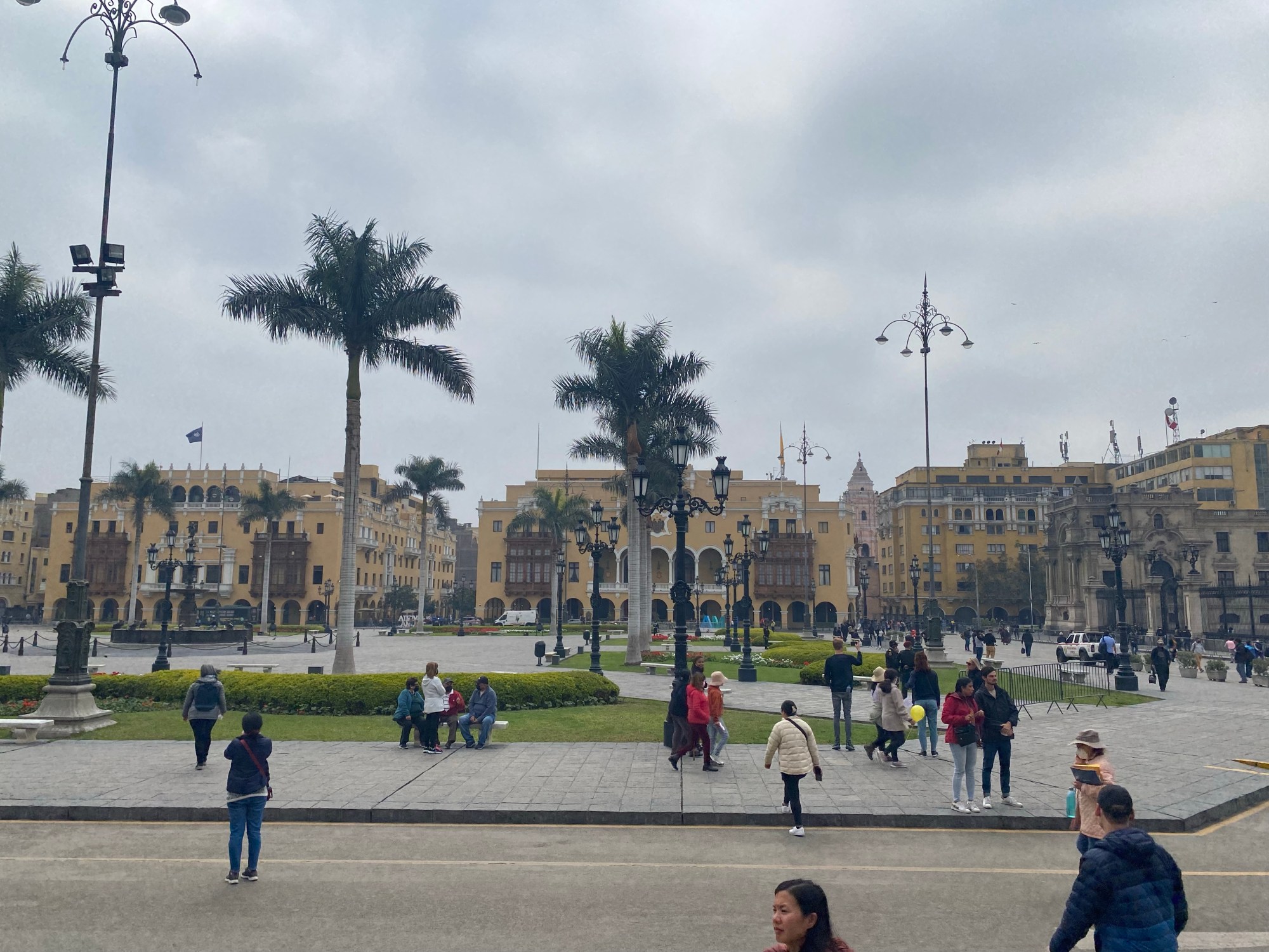 Heute Morgen fahren wir gleich nach dem Frühstück zur Autovermietung und geben das Auto ab. Anschliessend fährt uns ein Shuttle an den Flughafen. Der Flug dauert nur gut dreieinhalb Stunden. Beim Anflug schauen wir gespannt aus dem Fenster. Lima sieht riesig aus. Man sieht endlos weit Lichter. Lima hat knapp 10 Millionen Einwohner. Somit leben in Lima mehr Menschen als in der gesamten Schweiz. Um etwa 19:00 Uhr landen wir in Lima. Nach der Landung fahren wir mit einem Uber in unser Hostel. Bis wir unser Zimmer beziehen können, ist es fast schon 21:00 Uhr. Wir sind beide ziemlich müde aber hungrig, weshalb wir uns etwas Essen bestellen. Am nächsten Morgen gehen wir in einem nahe gelegenem Einkaufszentrum einkaufen. Unser Zimmer ist nämlich mit etwas Geschirr, einem Kühlschrank und einem Wasserkocher ausgestattet, was wir die nächsten Tage natürlich ausnutzen werden. Den restlichen Tag verbringen wir im Hostel. Am Abend gehen wir in einem Restaurant Nachtessen. Die Auswahl an Restaurants in Lima wirklich gross. Nicht umsonst wird Lima als kulinarische Hauptstadt Lateinamerikas bezeichnet. Am nächsten Morgen spazieren wir nach dem Frühstück etwas herum. Lima besteht aus 43 Bezirken. Unser Hostel befindet sich im Bezirk Miraflores, welcher einer der wohlhabendsten Bezirke von Lima ist. Es ist auch das touristischte Stadtviertel und gilt im Vergleich mit anderen Stadtteilen als relativ sicher. Trotzdem ist auch hier Armut bemerkbar. Gleich in der Nähe unseres Hostels befindet sich der Kennedy-Park. Dieser wurde nach dem amerikanischem Präsidenten J. F. Kennedy benannt. Inoffiziell kann man den Park auch als Katzen-Park bezeichnen, da sich dort unzählige Katzen aufhalten. Viele Leute setzen sich auf eine Bank und streicheln die Katzen. Später erfahren wir, dass man anscheinend vor ein paar Jahren mit einem Rattenproblem im Kennedy-Park zu kämpfen hatte, weshalb man dort viele Katzen ausgesetzt hat, in der Hoffnung so die Ratten zu bekämpfen. Die Ratten seien tatsächlich verschwunden, nur leben nun die Katzen weiterhin im Park. Ich bin mir jedoch nicht sicher, ob dies wirklich der Wahrheit entspricht. Rund um den begrünten Park hat es verschiedene Stände mit Essen, Kleidern, Blumen etc. Am nächsten Tag machen wir eine Free Walking Tour, welche von unserem Hostel angeboten wird. Dabei fahren wir mit einem lokalen Bus zum historischen Teil Limas. Dort sehen wir uns das Regierungsgebäude, eine Kirche und den Plaza de Armas (Haupt-Platz) an. Hier im historischen Teil sind viele Protestierende, welche von der Polizei vom Regierungsgebäude ferngehalten werden. Von unserem Guide erfahren wir, dass viele mit dem derzeitigen Präsidenten und der gesamten Regierung unzufrieden seien. Die Inflation macht den Einwohnern zusätzlich zu schaffen. Die Proteste erscheinen alle noch friedlich, wir halten uns aber zur Sicherheit trotzdem fern. Zur Free Walking Tour gehört auch eine gratis Pisco- und Schokoladendegustation. Nach unserer Free Walking Tour, verabschieden wir uns von der restlichen Gruppe und laufen zur Küste. Die Aussicht von hier oben auf pazifischen Ozean ist toll. Eine hohe Klippe trennt den Strand von den Gebäuden hier oben. Wir gehen in das Einkaufszentrum „Larcomar“, welches in die Klippe „hineingebaut“ wurde und essen dort etwas. Danach spazieren wir noch etwas durch das Einkaufszentrum und gehen anschliessend zurück zum Hostel. Etwas später gehen wir in einem Restaurant unweit von unserer Unterkunft Abendessen.