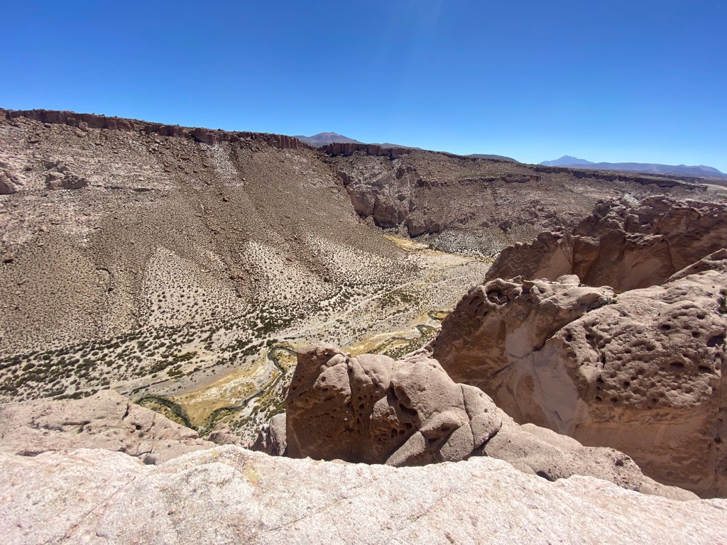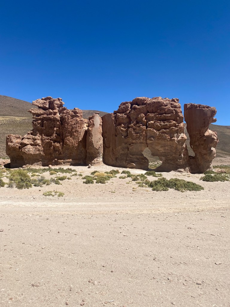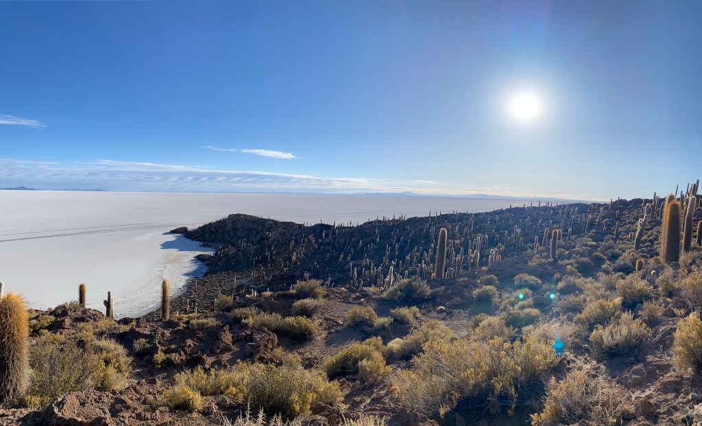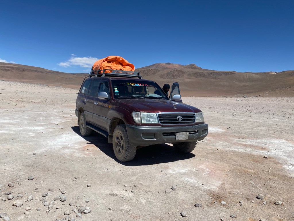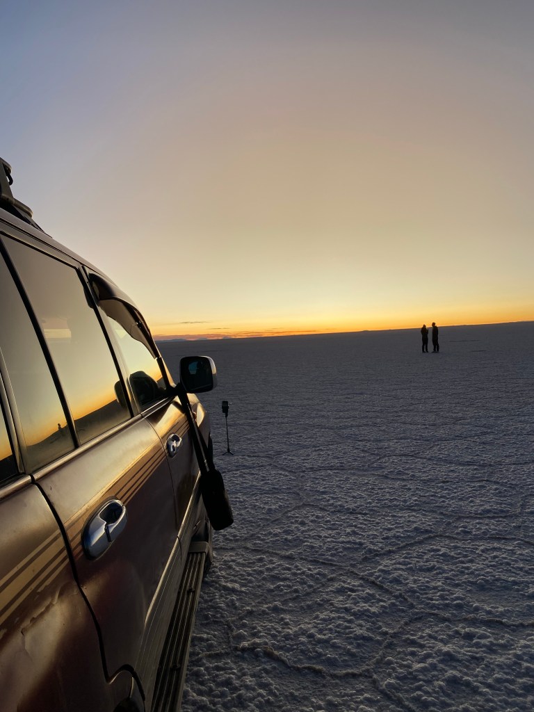 Der heutige Tag startet relativ früh. Da wir in den Tag mehrheitlich im Auto verbringen und nur sehr beschränkt Platz haben, deponieren wir unsere Rücksäcke hier im Hotel und nehmen nur das Nötigste in einer Tasche mit. Ich hoffe wir haben auch genügend Wasser und Snacks dabei. Um kurz nach 7:00 Uhr werden wir schliesslich mit einem Minibus abgeholt und fahren zur chilenischen Grenzkontrolle. Nach knapp einer Stunde sind wir bereits dort und holen uns den Ausreisestempel. Mir wird währenddessen übel und total schwindlig. Unser Fahrer erklärt uns, dass wir in der letzten Stunde knapp 1500 Höhenmeter gemacht haben und wir die Sache langsam angehen sollen. Nach weiteren 5 Minuten kommen wir schliesslich bei der bolivianischen Grenzkontrolle an. Die Grenzkontrolle besteht aus einem kleinen, halb auseinanderfallenden Häuschen. Nachdem unsere Einreise genehmigt wurde, essen wir zusammen Frühstück. Hätten wir das gewusst, wären wir nicht extra früher aufgestanden, um in unserer Unterkunft noch etwas zu essen. Aber egal, wir freuen uns riesig und sind gespannt auf die nächsten Tage. Unsere Gruppe, mit welcher wir die nächsten Tage im Auto sitzen, bestehen nebst uns aus der Franzosin Clémentine, dem US-Amerikaner X (ja, er nennt sich wirklich so) und Nicole sowie Jonathan, einem Paar aus Brasilien. Nach dem Frühstück kommt unser Guide/Fahrer Nelson an. Nelson ist aus Bolivien und lebt in Uyuni. Am heutigen Tag besuchen wir die Lagunen „Laguna blanca“ und „Laguna verde“, die Dali-Wüste und ein Geysirfeld. Dann halten wir beim Thermalbecken „Termas de Polques“ bei welchem man sich bei knapp 30 Grad warmen Wasser aufwärmen kann. In einem der Häuser nebenan, essen wir dann zu Mittag. Am Nachmittag besuchen wir noch die „Laguna colorado“ welche rot gefärbt ist und wo wir unglaublich viele Flamingos und ein paar Vicuñas beobachten können. Das Wetter ist hier ziemlich unberechenbar. Die Sonne scheint zwar intensiv, aber da wir uns auf über 4‘000 Höhenmeter befinden und es stark windet, trage ich mehrere Schichten Kleidung. Um etwa 18:00 Uhr kommen wir in unserer heutigen Unterkunft an. Ein sehr einfaches, schlichtes Haus ohne Heizung. Nach dem Abendessen schlüpfen wir unter die Decke und frieren erstmal. Nachts wird es brutal kalt. Irgendwann gewinnt aber die Müdigkeit und wir schaffen es doch einzuschlafen. Am nächsten Morgen geht es nach dem Frühstück weiter zu „Italia Perdida“, wo man Felsen in einzigartigen Formationen findet. Durch Wind und Niederschläge wurden diese über die letzten Jahrhunderte so geformt. Dann fahren wir zu zwei weiteren Lagunen, wo wir eine Herde Lamas antreffen. Nach dem Mittagessen fahren wir zum „Canyon Anaconda“, also der Anakonda Schlucht. Schwierig zu sagen, wem diese Schlucht wohl ähnelt… Nach einem weiteren aber kurzen Stopp bei einem kleinen Laden, endet der Tag bei unser heutigen Unterkunft. Heute übernachten wir in einem Salzhotel, von wo wir bereits eine mega Aussicht über den Salzsee „Salar de Uyuni“ haben. Das eigentliche Highlight unserer mehrtägigen Tour. Hier ist es noch kälter als letzte Nacht. Wir schlafen schlussendlich mit etwa 3 Schichten Hosen, 4 Schichten Oberteilen, dicken Socken und Handschuhen. Irgendwann klappt’s dann zum Glück auch mit dem Einschlafen. Nach einer kurzen Nacht geht es dann um etwa 4:00 Uhr los in Richtung Salar. Dort halten wir schliesslich an und beobachten über eine Stunde lang den Sonnenaufgang. Es ist unglaublich schön und wirklich unfassbar. Der Salar war früher ein riesiger See, der austrocknete und das Salz hinterliess. Der Salar ist etwas über 10’500 Quadratkilometer gross und ca. 120 Meter tief. Während der Regenzeit, also um Dezember bis Januar, bildet sich eine Wasserschicht über dem Salz, was dann wie ein riesiger Spiegel aussieht. Da gerade aber keine Regenzeit ist, ist der Salzsee trocken. Nun geht es weiter zur „Isla Incahuasi“. Auf dieser Erhebung, mitten im Salar, findet man unzählige jahrhundertalte Kakteen. Einige davon sogar bis zu zehn Meter hoch. Auf mich wirkt diese Insel einfach surreal. Nach einem kleinen Rundgang auf der Insel, essen wir dort zusammen Frühstück. Dann geht es zurück auf den Salar, wo wir Zeit haben Fotos zu machen. Nachdem wir alle fertig sind, fahren wir weiter. Nach ein paar weiteren kurzen Stopps für Souvenirs oder WC-Pausen, kommen wir schliesslich in Uyuni an. Vor dem Mittagessen, schauen wir uns noch den Eisenbahnfriedhof in Uyuni an. Dieser gilt als der grösster solcher „Friedhöfe“ weltweit. Danach geniessen wir das letzte gemeinsame Mittagessen. Nelson fährt uns später zum Agenturbüro in Uyuni und verabschiedet sich. Wir verbringen zusammen noch eine Stunde in Uyuni und besuchen einen lokalen Markt. Dann verabschieden wir uns von Clémentine, Nicole und Jonathan. Mit X und einer weiteren Franzosin, welche aus einer anderen Gruppe zu uns kommt, fahren wir nun mit einem neuen Fahrer zurück in Richtung San Pedro de Atacama. Abends übernachten wir nochmals in der Unterkunft, wo wir in der ersten Nacht übernachtet haben. Frühmorgens geht es dann weiter zur Grenze zurück nach Chile. Nach dem Frühstück an der bolivianischen Grenze, fahren wir wieder in einem Minibus zurück nach San Pedro de Atacama. Um Mittag treffen wir bereits wieder in unserem Hotel in San Pedro ein. Nach einer kurzer Erholungspause gehen wir abends im Zentrum etwas Essen und um 20:00 Uhr beginnt unsere Astronomietour. Wir fahren mit einem kleinen Bus ca. 20 Minuten aus San Pedro. Dort steigen wir alle aus und setzen uns auf Holzbänke. Unterdessen ist es pechschwarz um uns und wenn man hoch zum Himmel schaut, entdeckt man die Milchstrasse über unseren Köpfen. In den nächsten zwei Stunden werden uns verschiedene Sterne, sowie auch der Jupiter und Saturn gezeigt. Dabei können wir verschiedene Teleskope benutzen. Im Anschluss an die Tour fallen wir müde ins Bett. Die letzten Tage waren für uns beide ein absolu
