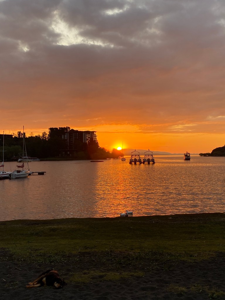 Nach einer kurzen Nacht werden wir vom Shuttle abgeholt und fahren zum Flughafen in Calama. Von Calama aus fliegen wir nach Temuco, eine Stadt in der Seenlandschaft Chiles, welche sich in der Mitte Chiles befindet. Dort holen wir unser Mietauto ab und fahren nach Pucón. Pucón liegt am See „Lago Villarrica“, welcher nach einem angrenzenden Vulkan benannt ist. Bekannt ist dieser Ort vorallem für Naturliebhaber und Sportbegeisterte. Wandern, Fischen, Rafting, Reiten, Kayaking, Mountainbiking und noch viel mehr. Nach unserer Ankunft im Hostel, welches sich gleich am See befindet, gehen wir einkaufen und kochen ein leckeres Abendessen. Am nächsten Morgen rüsten wir uns nach dem Frühstück für unseren Angelausflug aus. Unser Guide holt uns mit dem Auto ab und fährt mit uns an den Rio Liucura. Dort steigen wir auf ein kleines Boot. Janosch und ich sitzen vorne, während unser Guide hinten rudert und uns Tipps zur Führung und zur Köderwahl gibt. Bereits nach dem zweiten Wurf hängt beim Janosch eine schöne Regenbogenforelle am Haken! Während denn nächsten paar Stunden treiben wir gemütlich herum und fangen insgesamt fünf solcher Prachtsexemplare. Diese lassen wir aber alle wieder zurück in die Freiheit. Das Wasser des Flusses ist glasklar. Wir haben auch Glück mit dem Wetter. Die Regenwolken vom frühen Morgen haben sich verzogen und wir können unsere paar Stunden auf dem Boot richtig geniessen. Unser Guide fährt uns nach dem Angel-Ausflugs wieder zurück in unser Hostel. Den restlichen Tag spazieren wir etwas durch das Dorfzentrum. Abends findet im Hostel ein Barbecue-Abend statt. Dabei treffen wir viele tolle Leute aus verschiedensten Orten und unterhalten uns bis spätnachts mit ihnen. Leider regnet es den ganzen nächsten Tag. Die Tour zum Vulkan, ein Highlight dieser Region, finden daher leider nicht statt. Wir entscheiden uns den Tag zu nutzen, um wiedermal etwas Sport zu machen und gehen Padel-Tennis spielen. Den restlichen Tag verbringen wir mit Planen der nächsten Wochen.